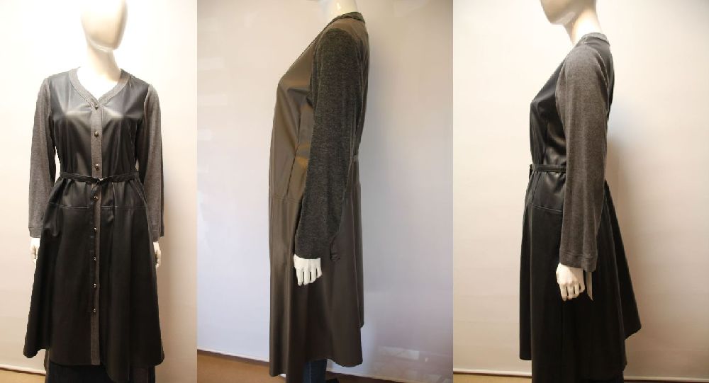フェイクレザートとアクリルウールのニットコンビ。 ワンピとしても使えます。 カラー在庫:モカのみです |