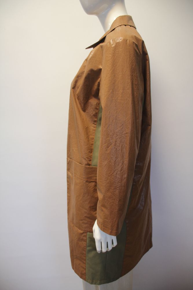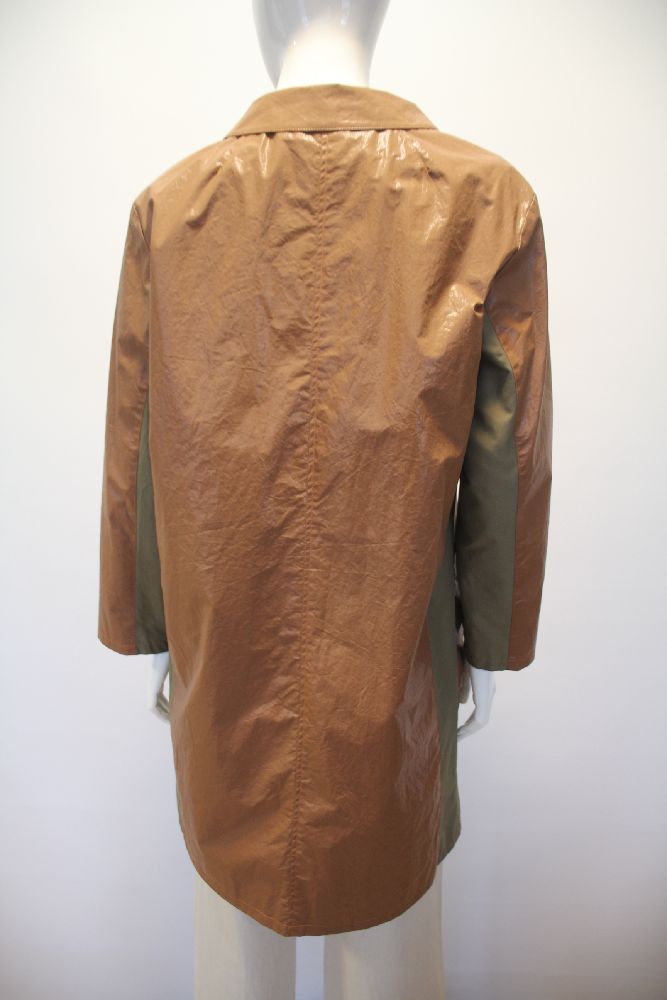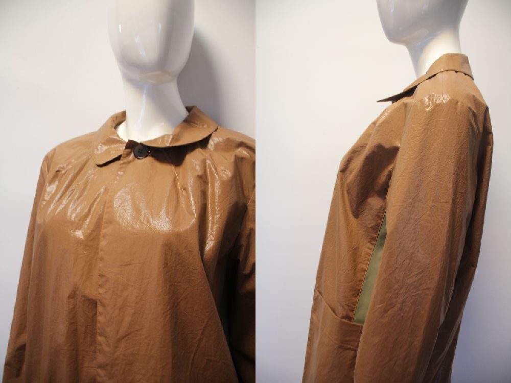コットンタイプライターにコーティング加工を施した素材。 タイプライター加工でナチュラルなシワ感を出し天然素材のような風合いを表現し、ツヤのあるフェイスはライトウェイトのレザーのような存在感。 別布はクリアでマットな高密度ツイルを組み合わせで素材感と色に立体感を加えています。 裏地も付いているので秋口や春先のアウターとして重宝します。 |