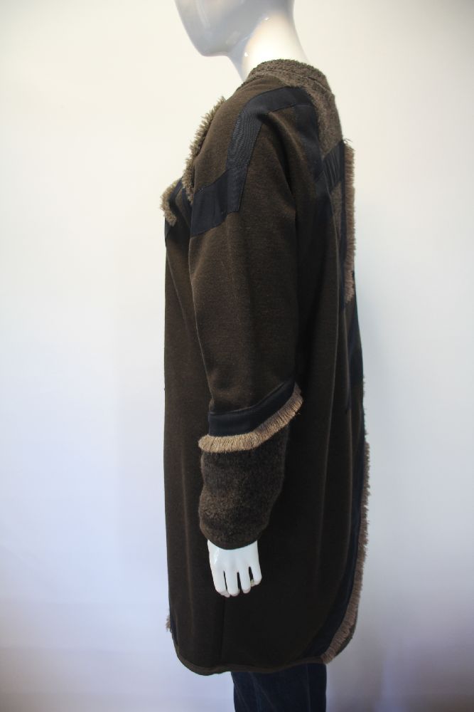 素材にはふんわりと柔らかで軽い仕上がり、ウール高混率のパイル素材を使用しています。 適度に目の詰まったパイル編みで、保温性、ストレッチ性、軽量化に富んでいます。 別布にウール混ポンチを使用し、マットでフラットな表面感が表地パイルとのコントラストを出しています。 |