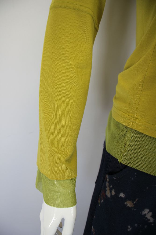 マイクロ抗ピルアクリルとマイクロレーヨンにシースルーを使用。 襟のチュールは圧迫感がないので長時間の着用にも最適。 |