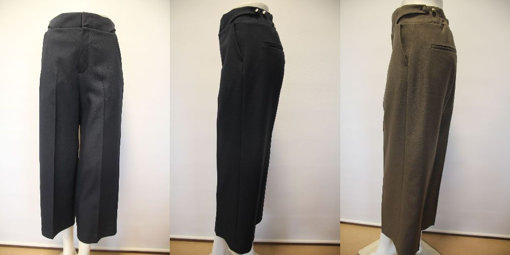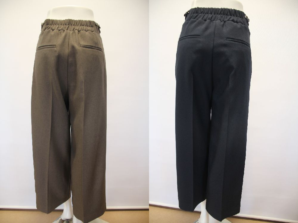 ポリエステルツイルストレッチ素材。 太番手のウーリー糸で織り上げた、ウールライクな膨らみとソフトな風合いが特徴。 グルカ風のベルトデザインが新鮮なワイドクロップドパンツ。 カラー/サイズ在庫:ブラウン(40)のみです |