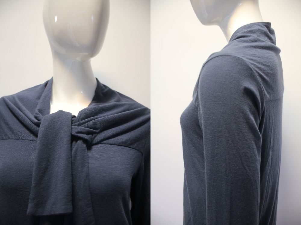 カシミヤ混暖か素材のプルオーバー。 ボウタイ風のデザインポイント。 カラーネイビー系 |
