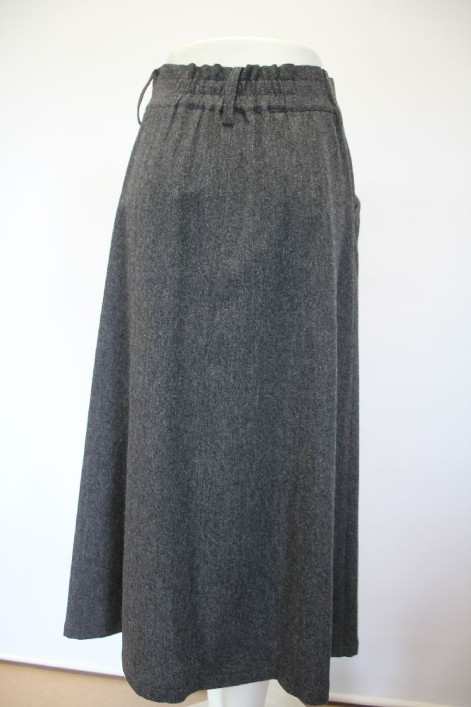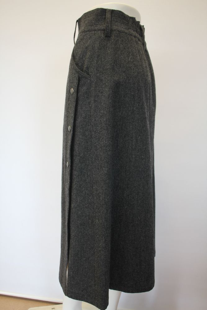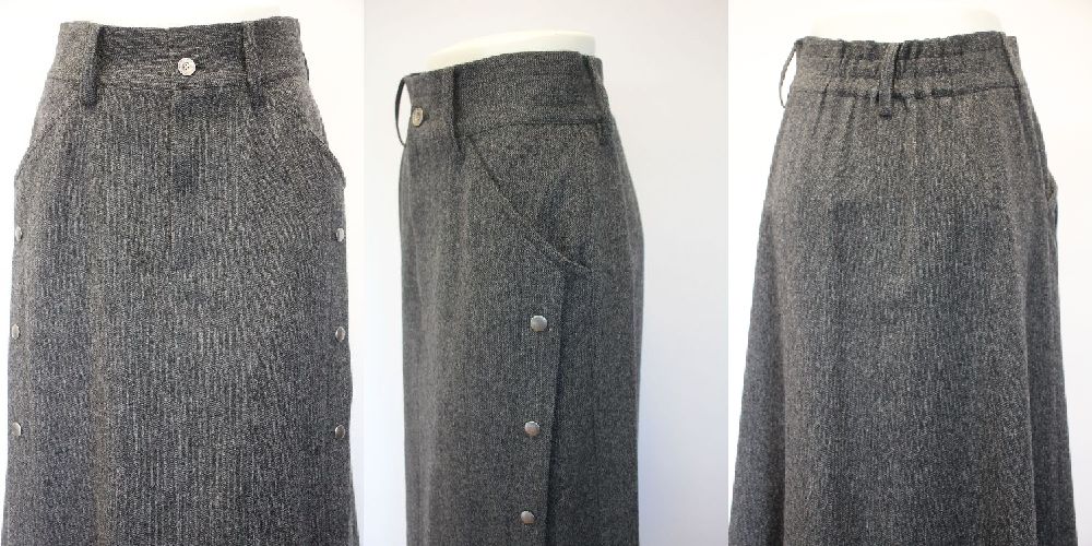 ハイウェスト・裏地付き・両サイド飾りボタン付き。 |