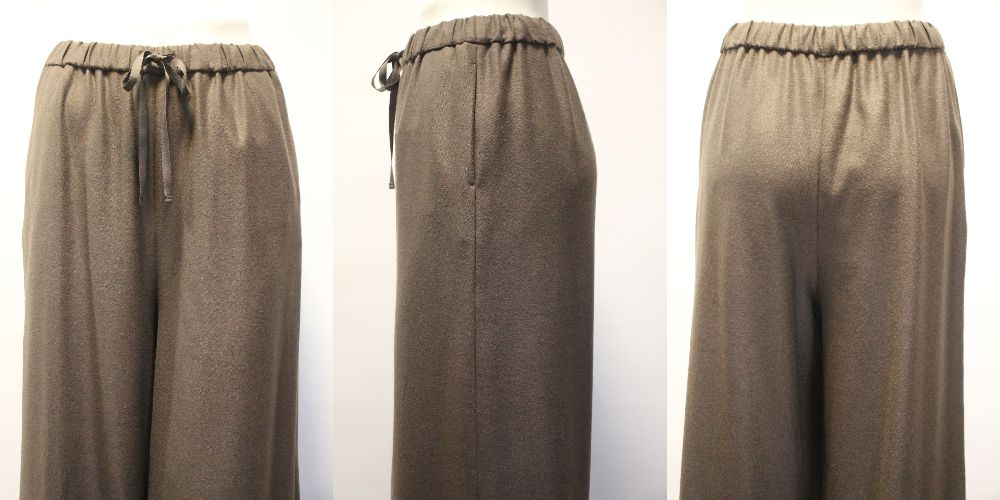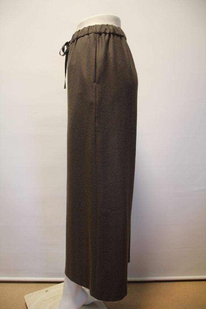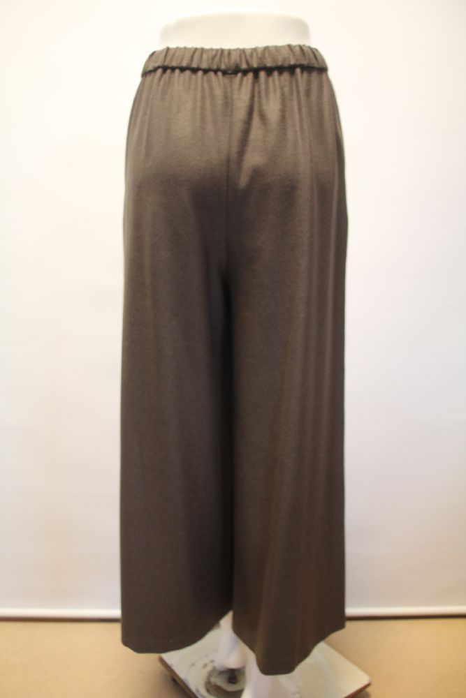 ウエストゴム仕上げで裏地なしのワイドパンツ。 暖か素材。 カラー:ブラウン |