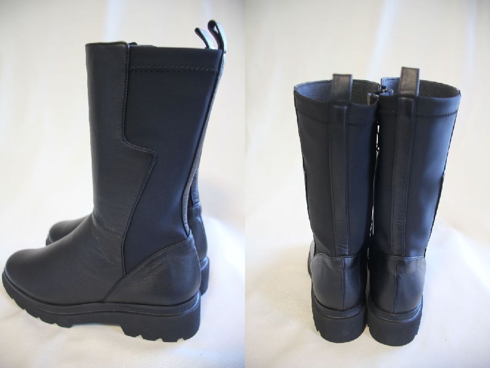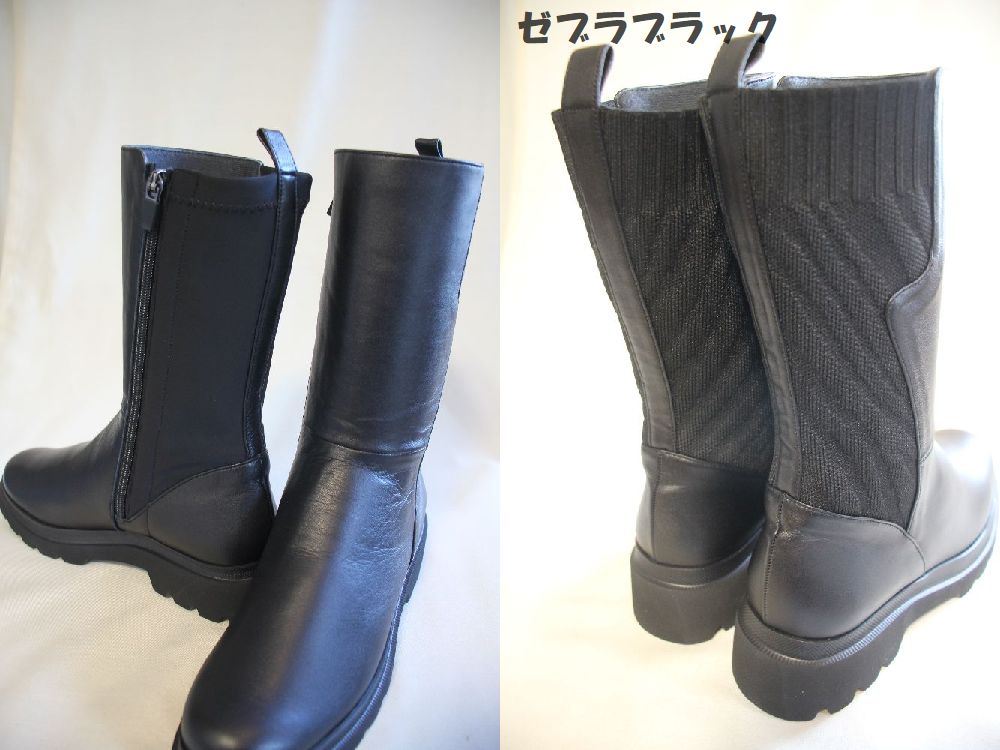 ストレッチ素材と牛革のハーフブーツ。 ブラックXブラックとブラックXゼブラのカラーです。 底材は滑りにくい使用です。 |