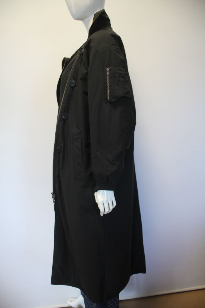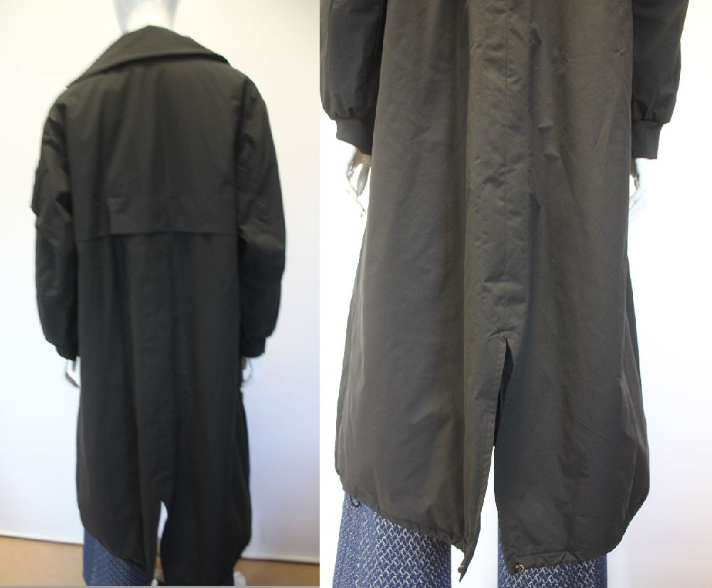 ポリエステルタフタ素材に薄く中綿を入れています。 前身はファスナーが二重になた重ね着風のデザイン。 前を開けて着流してもかっこよく着れます。 ダウンて前のアイテムで、春先まで長く着用できます。 |