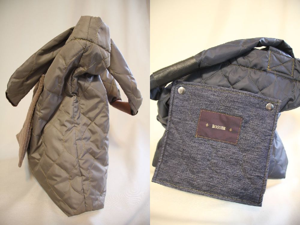 大小の図柄をカラーステッチでキルティングした素材を使用。 持ち手にシルキーシープレザーをを使用。 軽くて使いやすいデザイン。 カラー在庫:グレージュのみ |