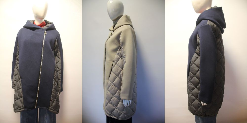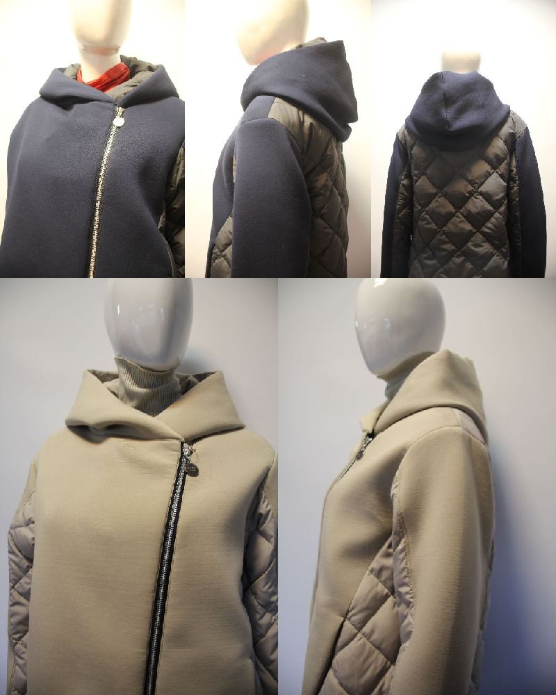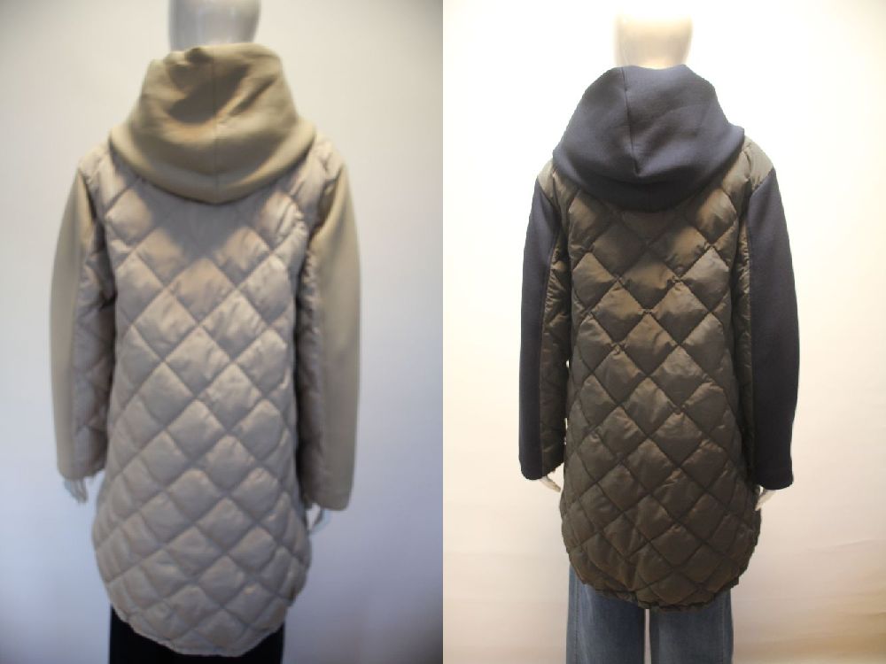 ダンボール素材とダウンドッキング、フード付きのコート。 両サイドにシームポケット付き。 カラー在庫:ネイビー |