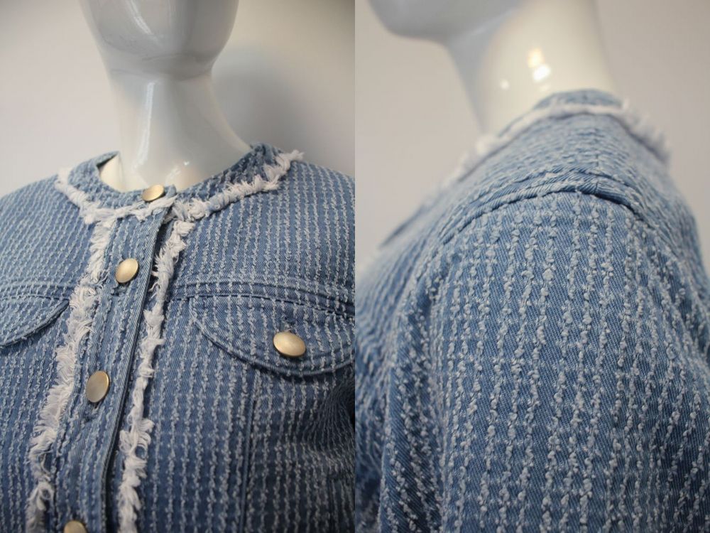 コットンカツラギ/デニム製品洗い デニムをベースにニードルパンチ加工で繊細な表面感を出した後、縫製して製品洗いで仕上げる、時間を手間のかかる工程を経て作っています。 |
