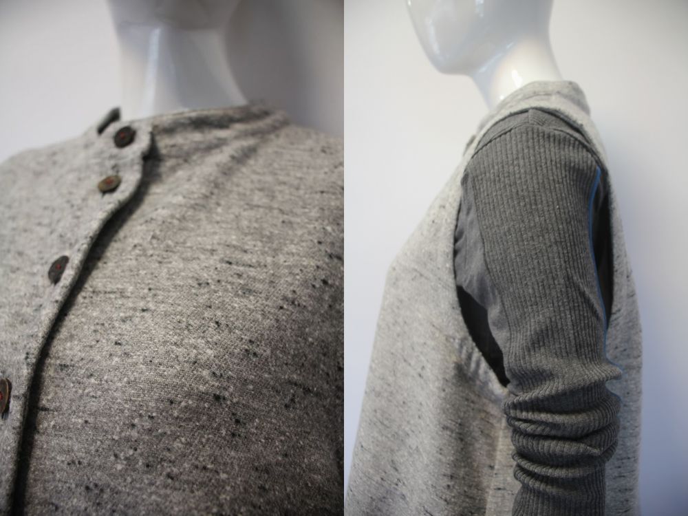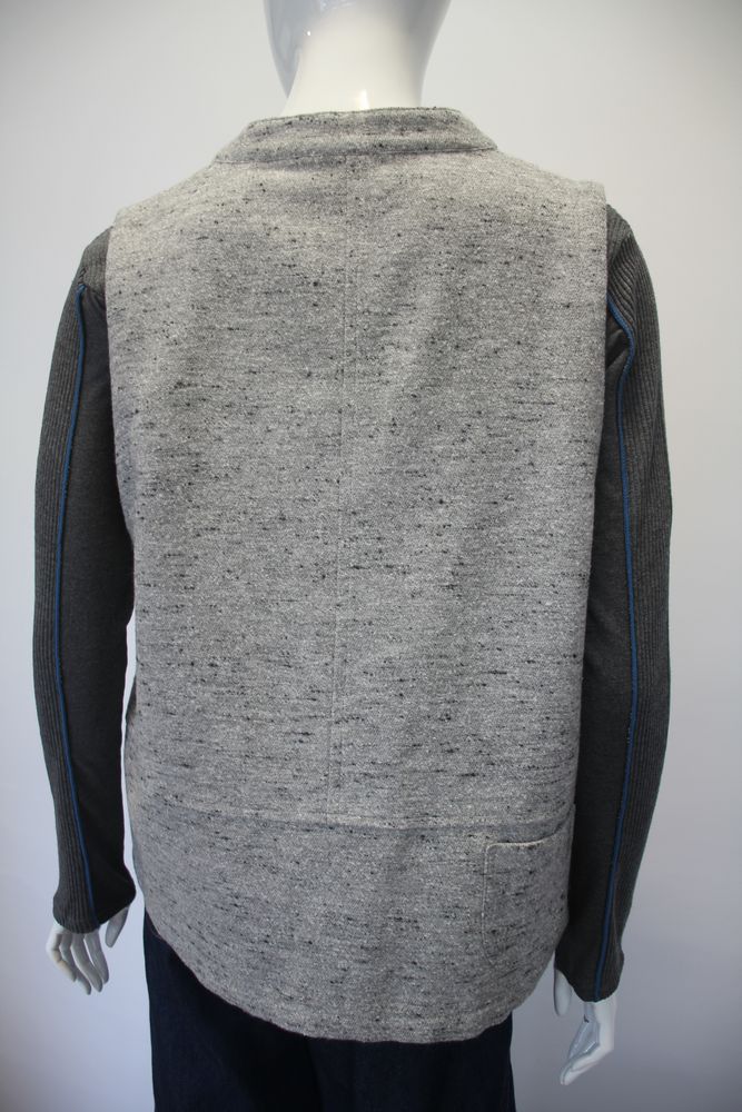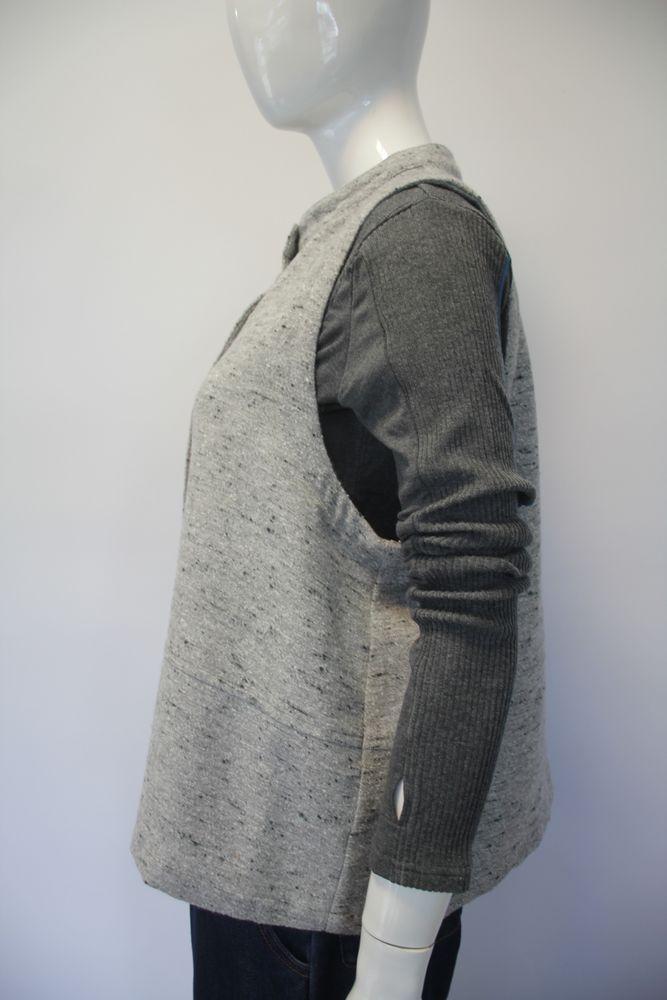アクリル混の温かみのある起毛素材。 前開き・前後ポケット付き。 カラー:グレー |