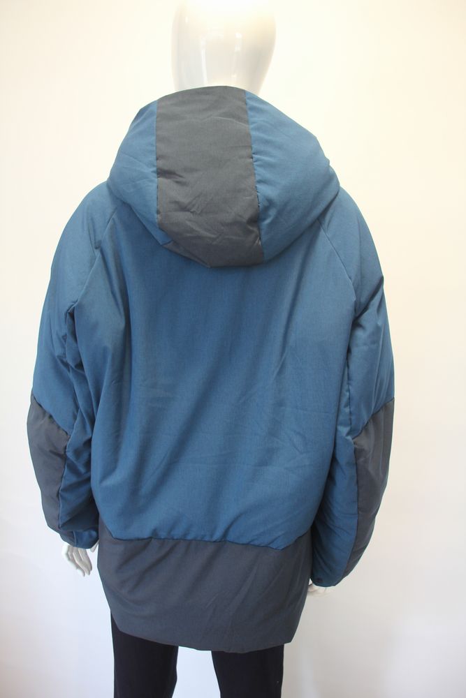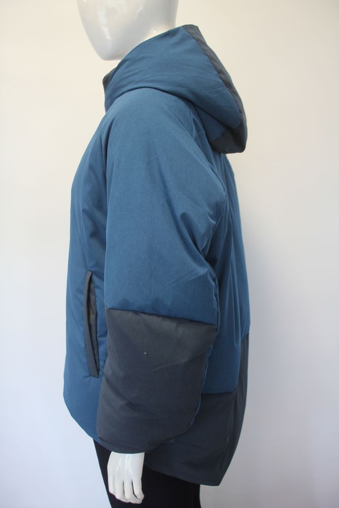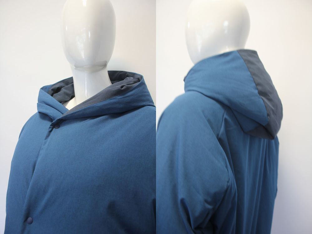表面がメランジ調に表現されたストレッチポリエステルのタフタを使用。 程よい厚みと、しなやか風合い、微光沢の深みのある表情が特徴です。ミニ マルなヘチマカラーのダウンブルゾン カラー:ブルー |