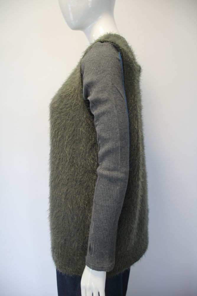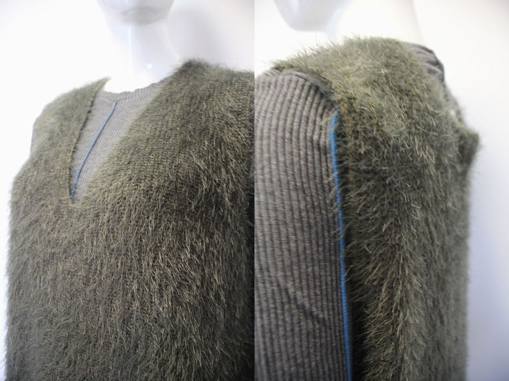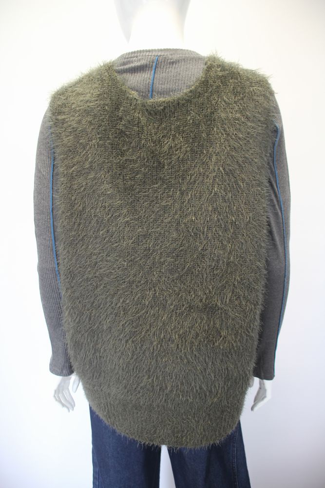 フェザーヤーンVネックベスト 落ち感のある素材です。 シャツやカットソーはもちろん、ワンピースに合わせるコーデもおすすめ。 カラー:カーキ |