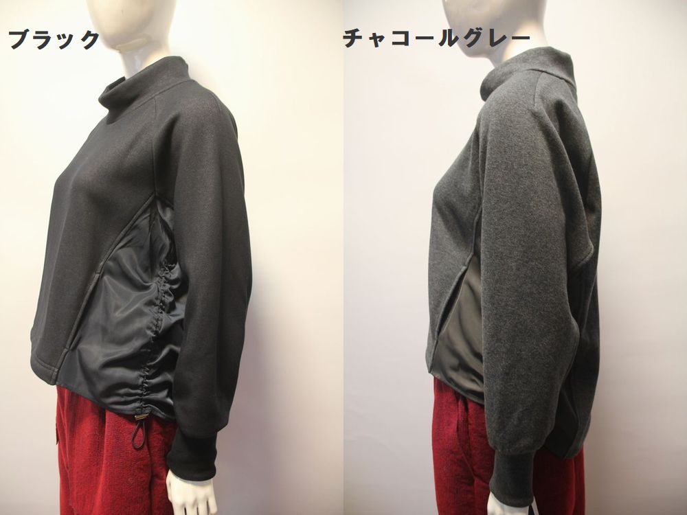 裏起毛のあったか素材と布帛のドッキングプルオーバー。 両サイドはスピンドルで長さを調節できます。 ポケット付き カラー在庫:チャコールグレー |