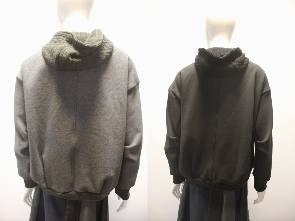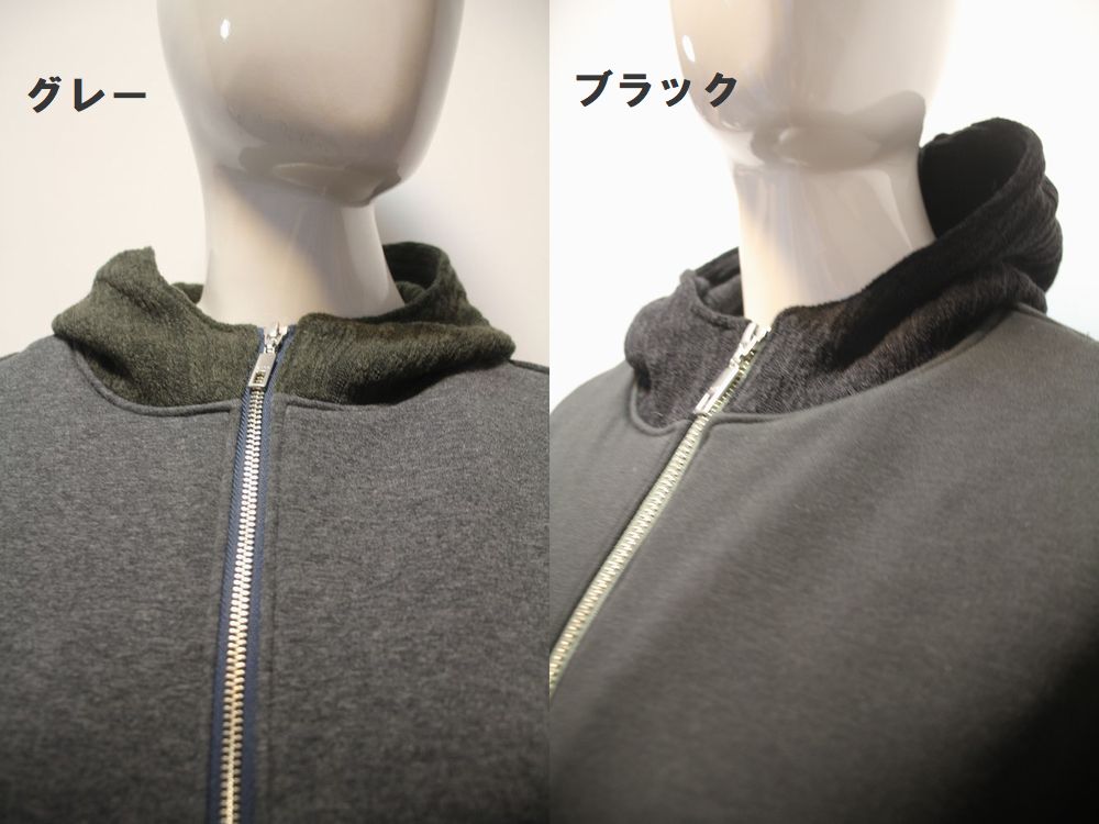 2WAYストレッチ裏起毛ジャージ。 表には超長綿を使用しているので、上質で滑らかな表面感を楽しめます。 フード部分にはケーブル柄のセーターライクなジャージ素材を使用。 カラー在庫:ブラックのみです。 |