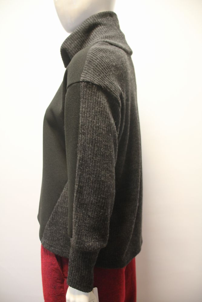 あったかいリブ素材とジャージのコンビ。 一枚着が楽しめるアイテム。 カラー:ブラックXチャコール |