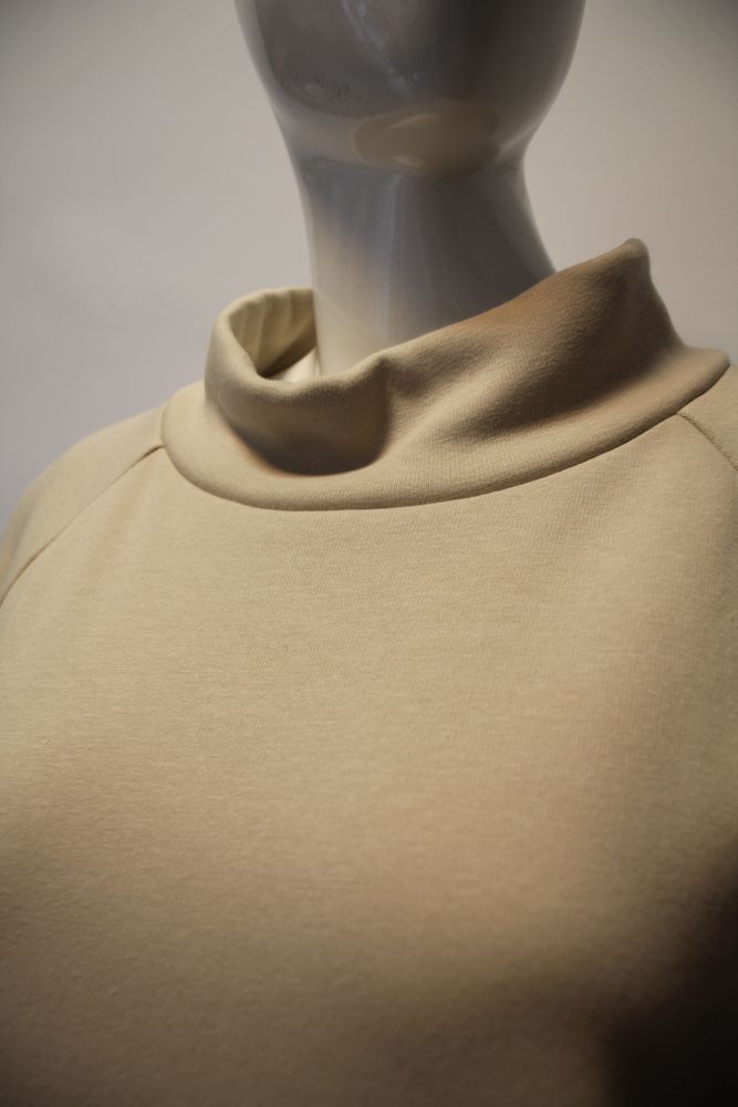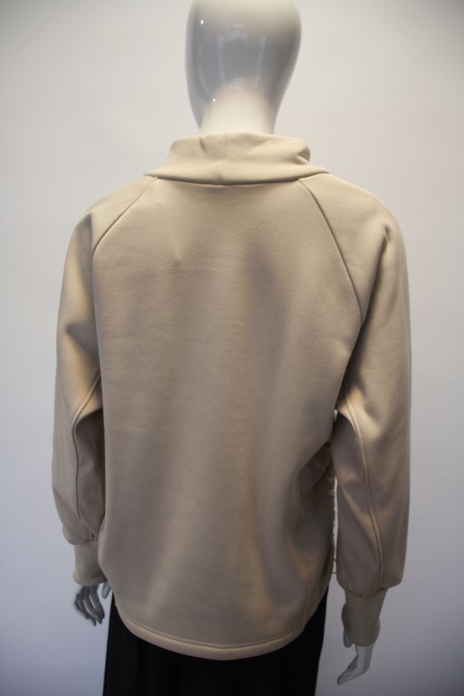 ボンバーヒート素材とポリエステルのドッキングプルオーバー。 前ポケット、裾にスピンドル付き。 |