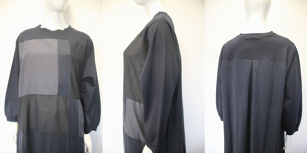 パッチワークのような切り替えデザインワンピース。全体の色味を落ち着いたカラーで仕上げることで、大人っぽい雰囲気です。 カラー:ネイビー |