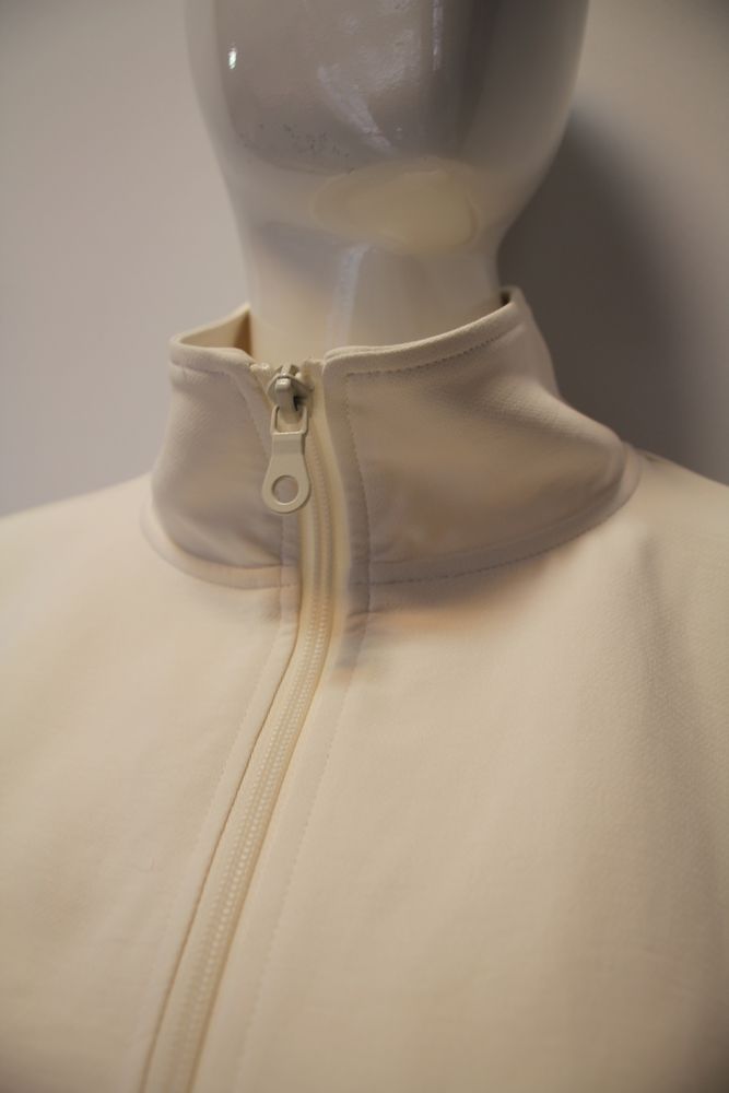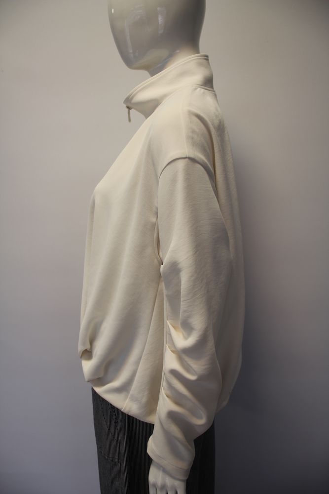 ポリエステル地の透けないプルオーバーです。 袖と裾にタックを入れたデザイン。 裾幅はスピンドルで調節可能 |