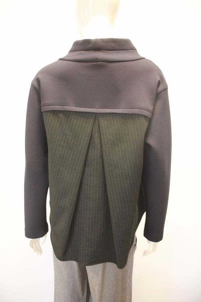 ダンボール素材と布帛ストライプのドッキングプルオーバー。 ポケット付き。 カラー:ネイビー |