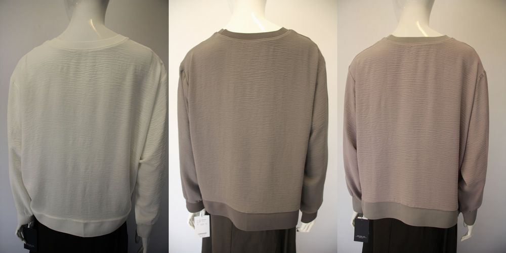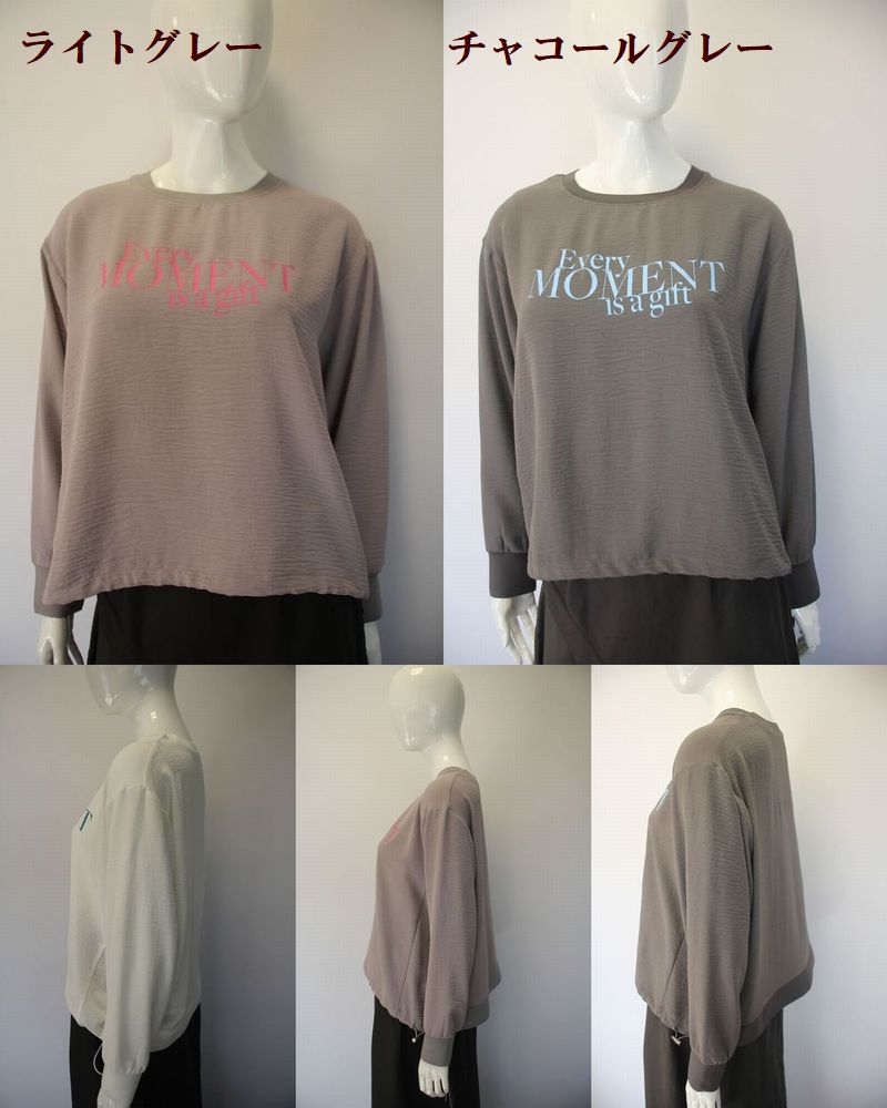 袖リブでブラウス素材のプルオーバー 袖口と後ろ裾にリブ地を入れたデザイン。 裾幅はスピンドルで調節できます。 体のラインを拾わず着やすい素材感です。 |
