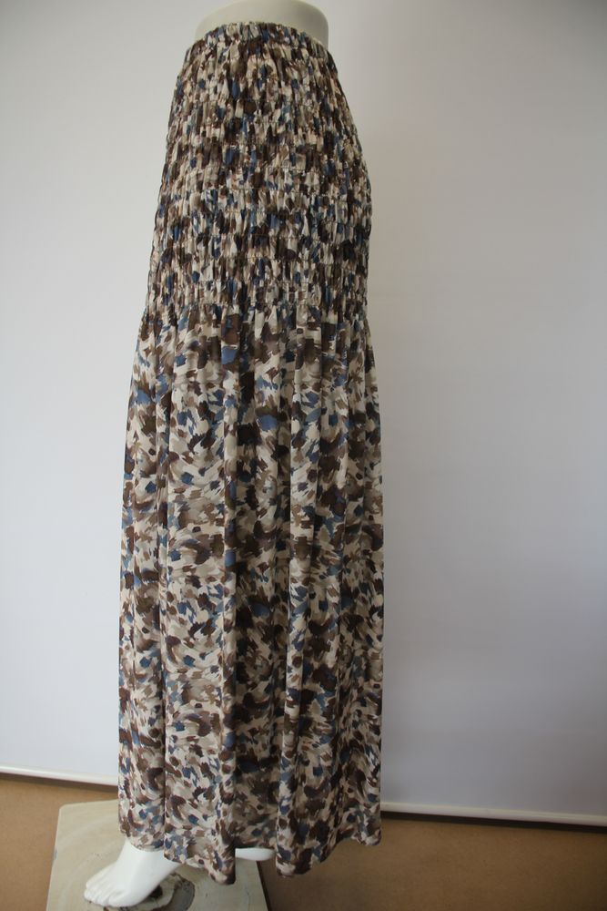 ポリエステルジョーゼット ぼかし柄プリント ベースには、ソフトでドレープ感のあるエレガントな素材を使用。 抽象的な花柄を多配色でぼかし調に表現した付加価値の高い柄がポイント。 華やかなプリント柄とウエストからヒップにかけて施されたシャーリングがデザインポイント。 気になるお腹周りを優しく包み込みながらすっきりと シェイプし、同時にプリント柄に立体感を与え、動きのある華やかな見え方を実現しました。 長すぎない丈感で足さばきも良く、軽快な印象で着こなせます。 |