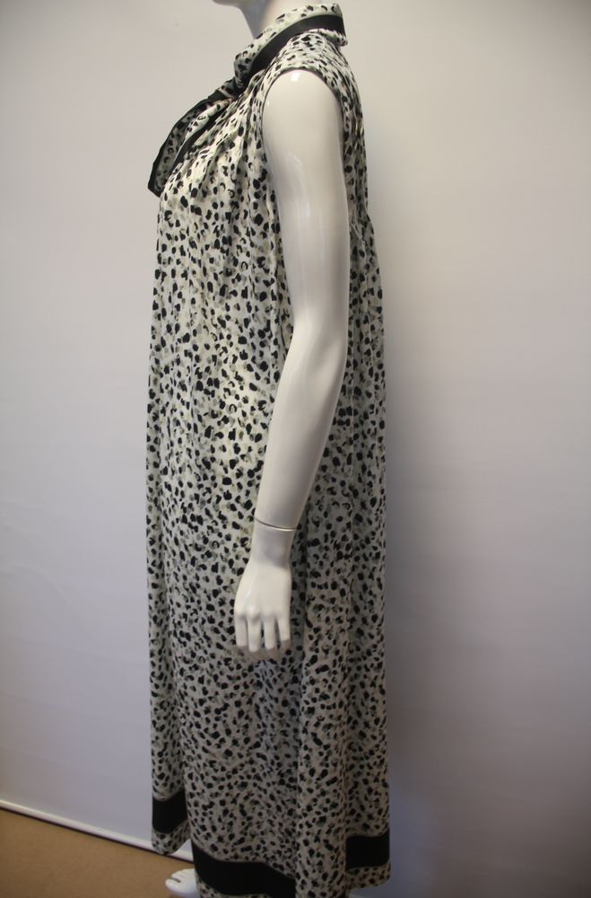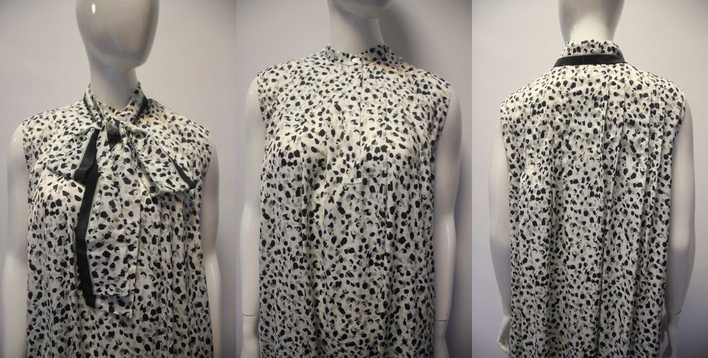 ポリエステルサテン レオパード柄プリント ベースには、上品な光沢とエレガントなドレープ性が特徴の素材を使用。 小付きのドット風にアレンジしたレオパード柄が、コーディ ネートに合わせやすいプリント柄 上品に映える微細で小ぶりな レオパード柄 にボウタイを添え、クラシカルでエレガントな印象に仕上げました。 裾に配したパネルプリントの配色が、歩くたびに揺れるシルエットをモダンに際立たせます。 すっきりとした腕出しが夏の装いに洗練を与え、一枚で 主役級の存在感を放ちます。 |