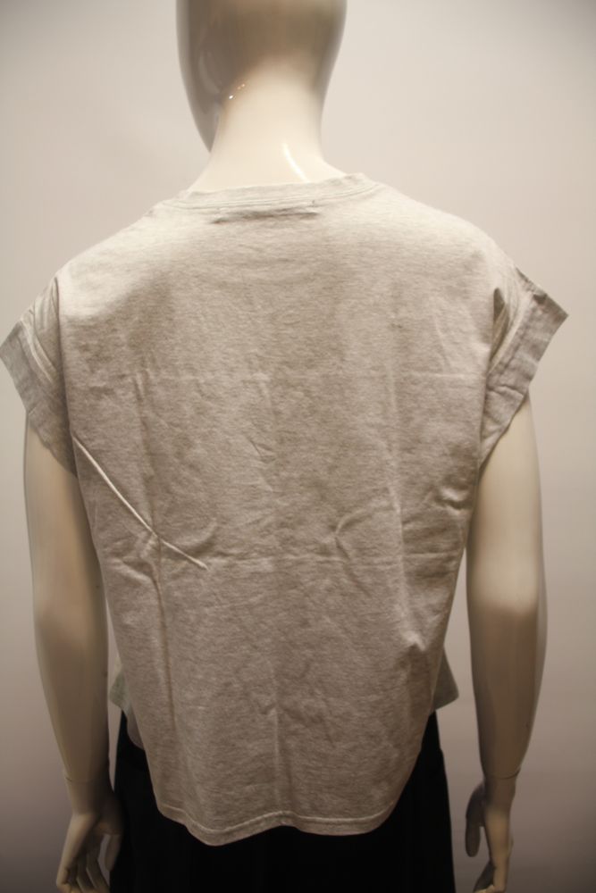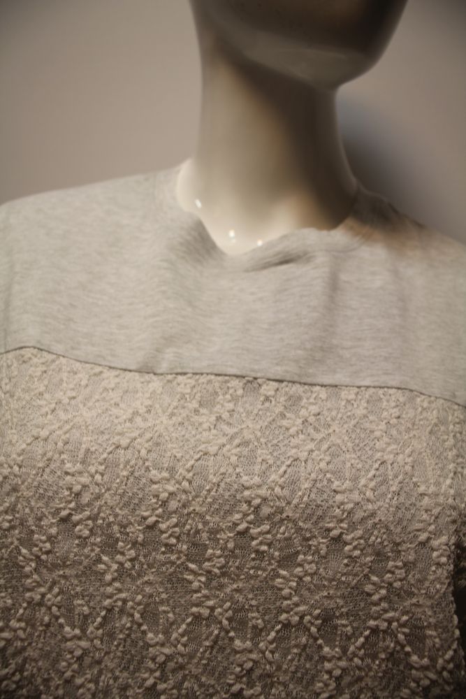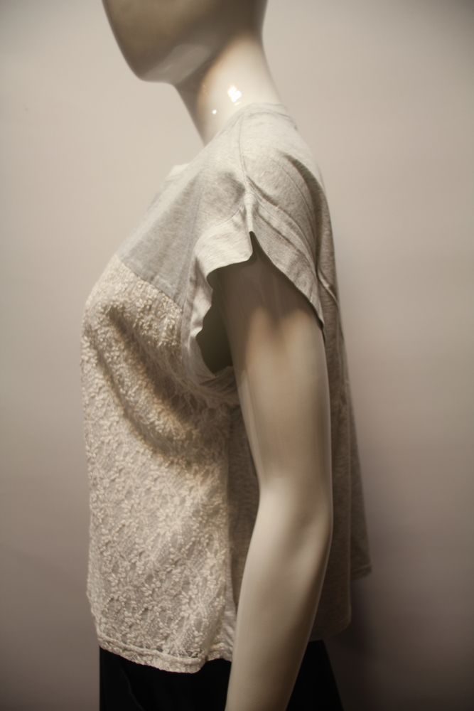 フレンチスリーブプルオーバー 前身ごろにレースをあしらったデザインがポイント。 体のラインを拾わない身幅と程よい着丈です。 カラー:トップグレー |
