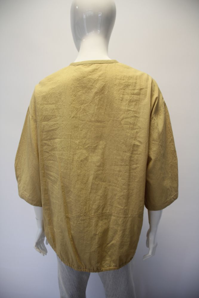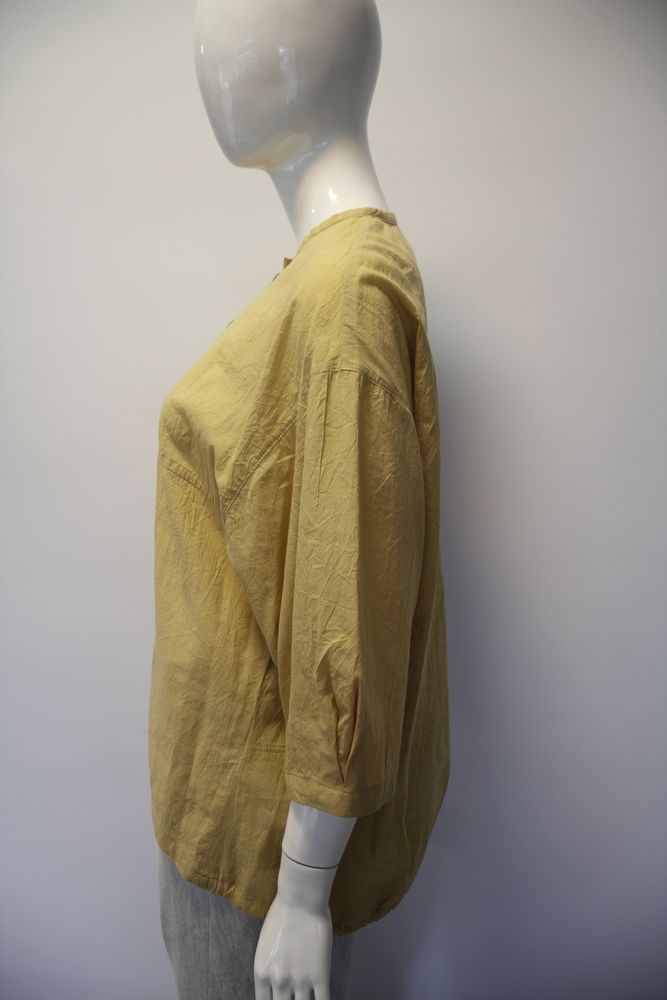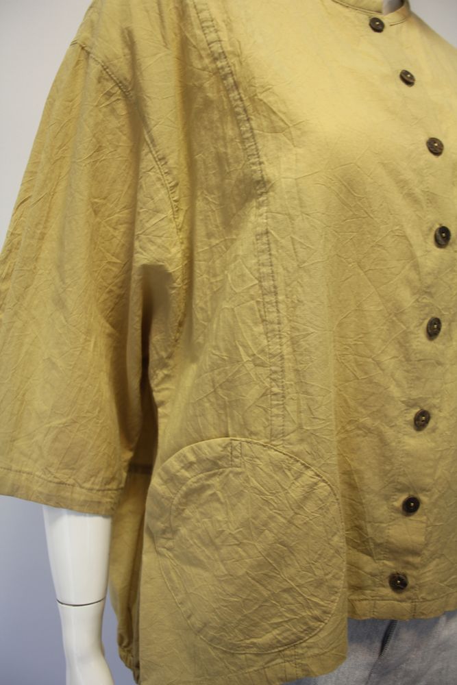 前開きで羽織にも使えるデザイン。 パッチポケット付き。後ろが長くゴムを入れてバルーンシルエットです。 カラー:マスタード |