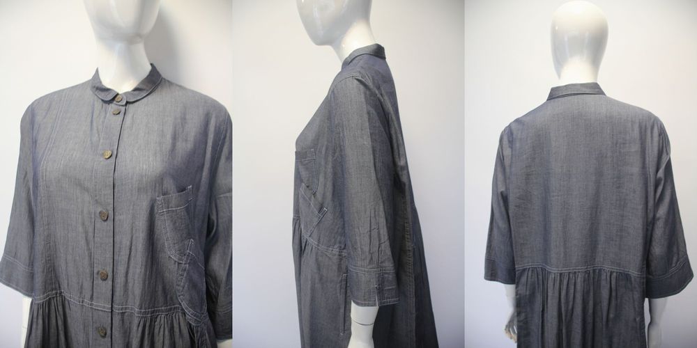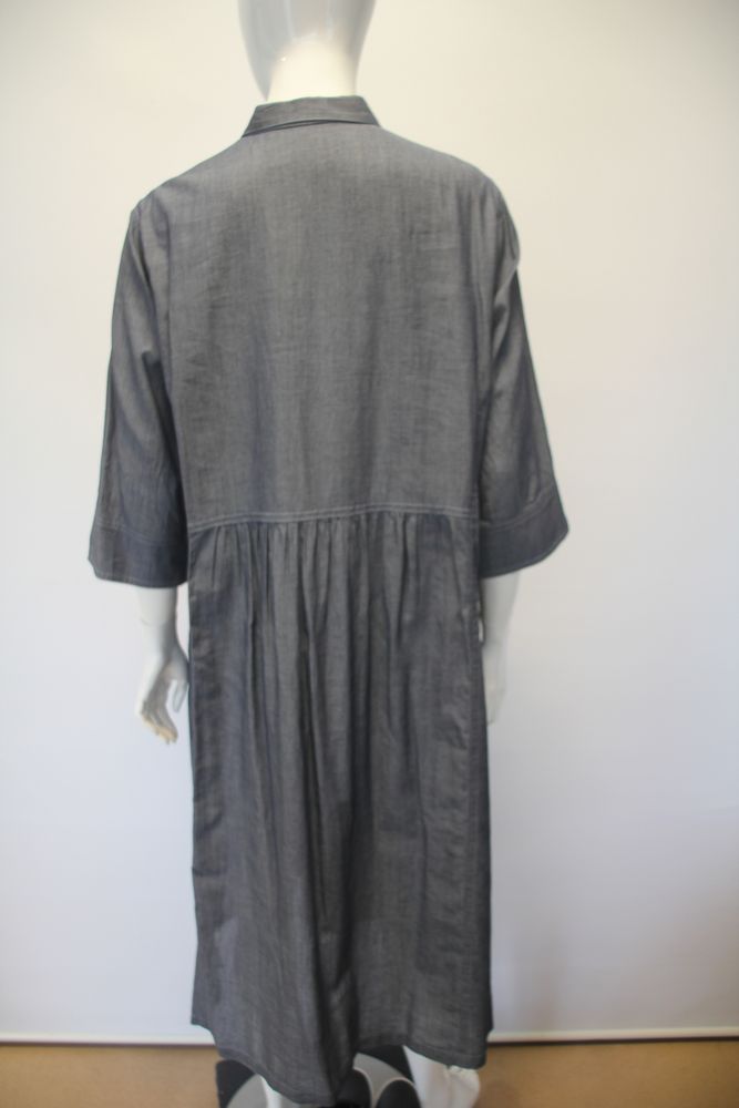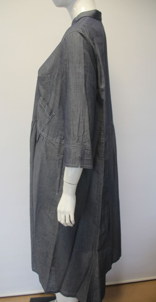 前開きコットンダンガリーワンピース。 襟・サイドポケット付き。 |